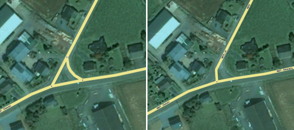 Als je in de WME naar de GPS-tracks van de twee rijrichtingen kijkt op zoomniveau 17 (100 m / 200 ft) en je ziet geen duidelijke scheiding dan de weg moet worden vereenvoudigd tot één weg met twee richtingen in plaats van twee gescheiden wegen met één richting.